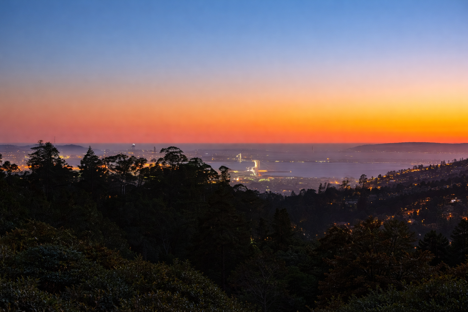 The Oakland Hills rise above the eastern side of Oakland, forming a natural boundary between Oakland and the inland East Bay communities.